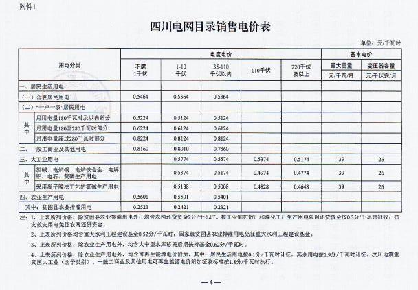 近日,四川省發 改 委發布了《四川省發展和改革委員會關于降低四川電網目錄銷售電價合理調整電價結構有關事項的通知》(以下簡稱“通知”)。通知指出,自2017年7月1日起,取消向燃煤發電企業征收工業企業結構調整專項資金,降低重大水利工程建設基金和中大型水庫移民后期扶持基金征收標準,降低后的征收標準分別為0.52分/千瓦時、0.62分/千瓦時。燃煤發電機組有關電價政策另行明確。具體情況如下:
