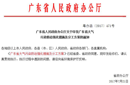 關于廣東省大氣污染防治強化措施及分工方案