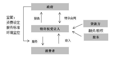 特許經(jīng)營(yíng)權(quán)允許社會(huì)資本運(yùn)營(yíng)商(受讓人)在指定區(qū)域內(nèi)負(fù)資全商提供公共服務(wù),包括系統(tǒng)的運(yùn)營(yíng)、維護(hù),征收費(fèi)用,管理,建設(shè)和修復(fù)等,同時(shí),運(yùn)營(yíng)商負(fù)責(zé)所有資本投資。盡管社會(huì)資本運(yùn)營(yíng)商負(fù)赍提供資產(chǎn),該資產(chǎn)即使在特許期內(nèi)也屬于政府所有。政府負(fù)確定實(shí)施標(biāo)準(zhǔn),并確保受讓人能達(dá)到標(biāo)準(zhǔn)。從本質(zhì) 上講,待許經(jīng)營(yíng)模式將政府的角色從服務(wù)提供者轉(zhuǎn)變?yōu)榉?wù)價(jià)格和質(zhì)量的規(guī)范者。