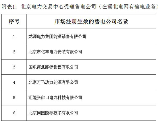 冀北電力交易中心公示新增9家售電公司名單