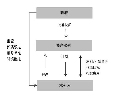 在租賃合同模式下,社會資本負責提供全部服務,并承擔滿足有關質量和服務標準的義務。除了新的投資和重置投資出政府負責外,運營商提供服務并自負費用和風險。租賃合同的期限一般是10年,續期可長達20年。服務的提供者由政府變更為社會資本,運營和維護的財務風險全部由社會資本運營商承擔,特別是運營商承擔虧損及消費者的未償債務。