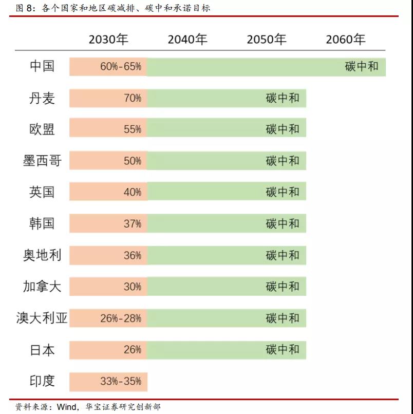 各個國家和地區碳減排、碳中和承諾目標: