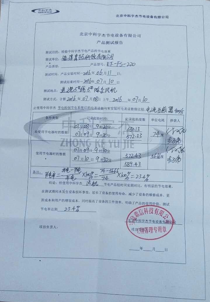 通過中科宇杰工程師對福建省青拓科技有限公司的能耗設備進行現場檢測分析,節能診斷,發現環保類風機具有較大節能改造空間,并針對環保類風機等能耗設備制定了可行的節能改造方案,預計節能效果在20%以上。