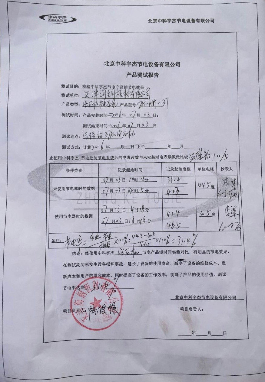 經安裝調試驗收,節電電效率明顯,節能率達到31.4%和16.2%。按保質十五年計算,此次節能改造能為天津海鋼板材有限公司帶來高達三百五十萬人民幣直接經濟效益。