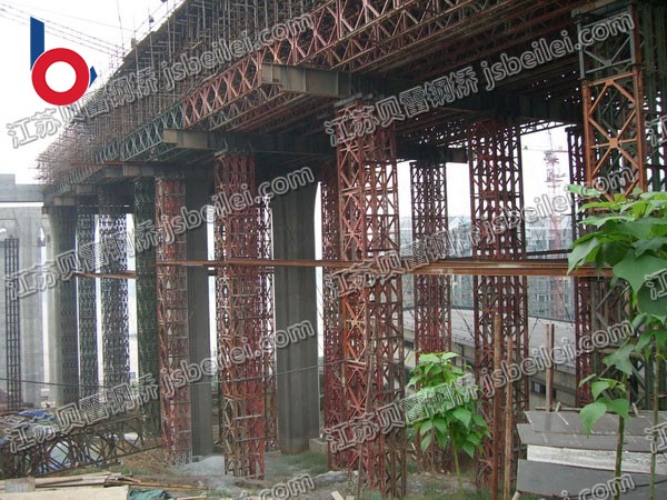 貝雷橋鋼便橋通常意義上來說,就是鋼結構形式的框架橋或桁架形式的貝雷橋。以高強鋼材制成輕便的標準化桁架單元構件及橫梁、縱梁、橋面板、橋座及連接件等組成,用專用的安裝設備可就地迅速拼裝成,適用于各種跨徑、荷載的桁架梁橋。